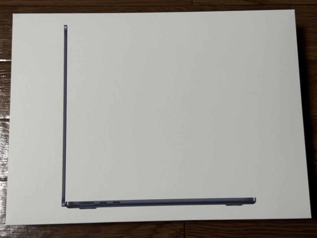 スペックは13インチ、ミッドナイトのメモリ16GB、ストレージ512GBモデル。要するにミニマム構成です。これでも十分なスペックだと思います。シルバーかミッドナイトか悩みましたが、今回は暗めのカラーを選択しています。