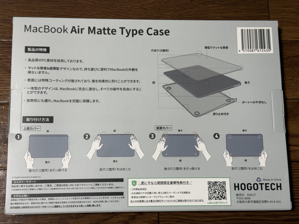まずは本体カバー。MacBookにはハードカバーを付けることにしています。今回もAmazonで買っておきました。