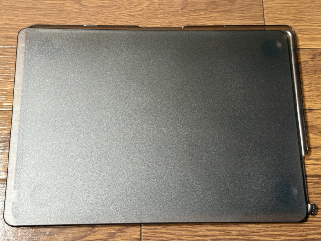 意外にもこういう暗めの色味の筐体のPCにトラックパッドフィルムを貼るのは初めてだったのですが、色味のせいか、結構ムラが見えますね。しばらく使っていたら薄くなってきましたけど、結構気になるなぁと感じました。
