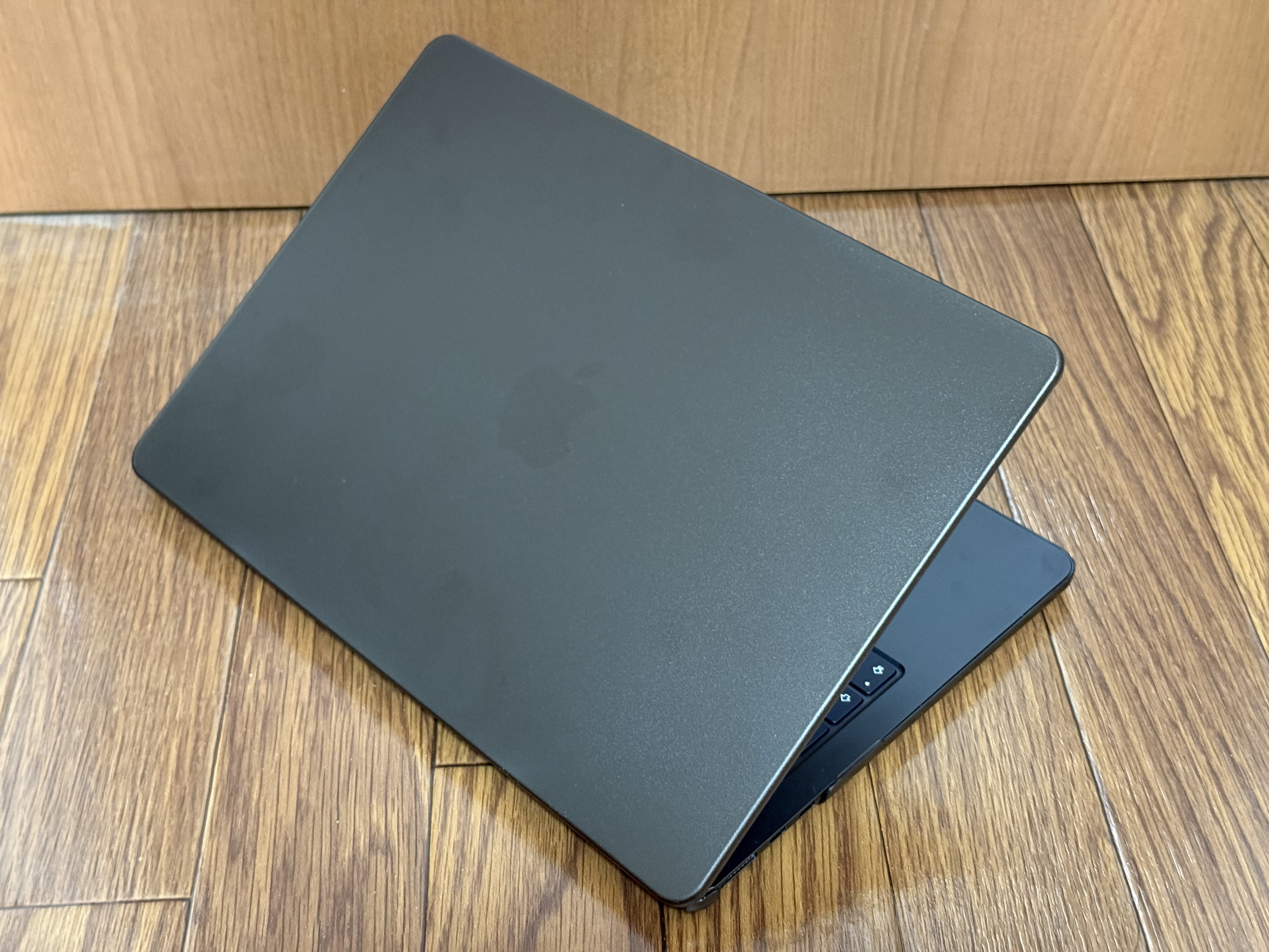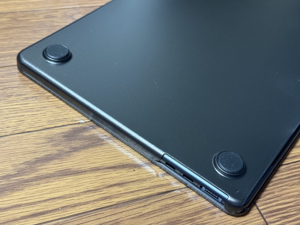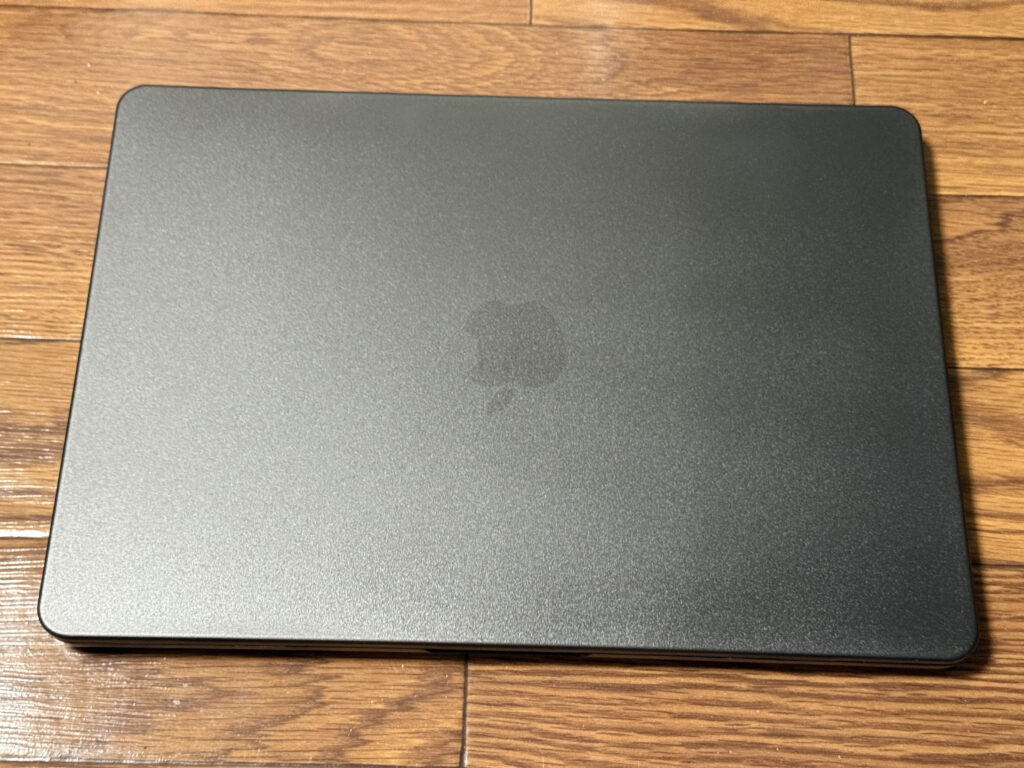 M2 MacBook Proでは「パームレストシール」を保護目的で使っていたのですが、今回は使っていません。本体が薄くて、パームレストシールを貼るとちゃんと閉じるか不安があるのと、M2 MacBook Proから剥がすとき苦労したためです。何かいい製品があったら貼るかもしれません。
